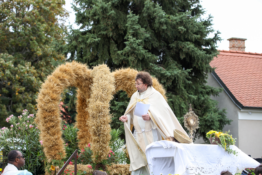 Die Kirchen werden mit Getreide, Früchten, Blumen, Brot und auch Gemüse geschmückt. Die Menschen bringen Speisen mit in die Sonntagsmesse, die während oder nach der Messe gesegnet werden. In manchen Pfarren werden die gesegneten Speisen danach an Arme weitergegeben.