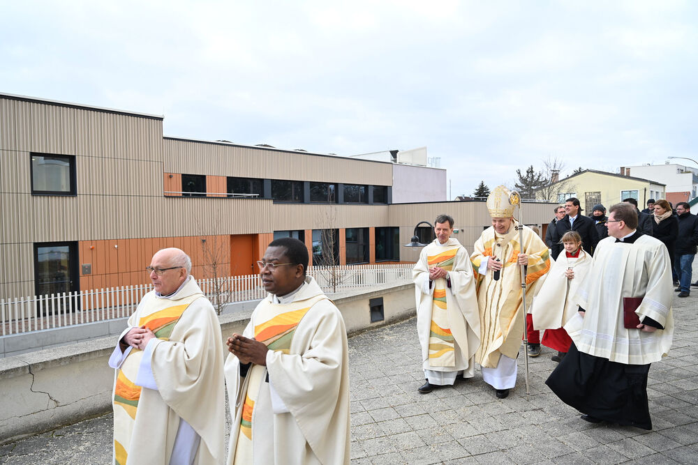 Am Sonntag, dem 12. Jänner 2025, feierte Kardinal Christoph Schönborn eine Festmesse und segnete anschließend das neue „Quartier Wolkersdorf“. Nach langen Verhandlungen entstand eine Kooperation zwischen der Pfarre und der Stadtgemeinde Wolkersdorf. Der Zu- und Umbau des Pfarrzentrums begann im Herbst 2023, und die neue Einrichtung wird nun von beiden genutzt. Wir waren mit der Kamera dabei.