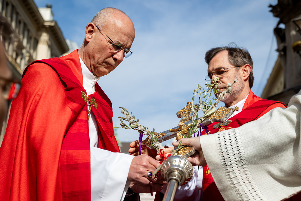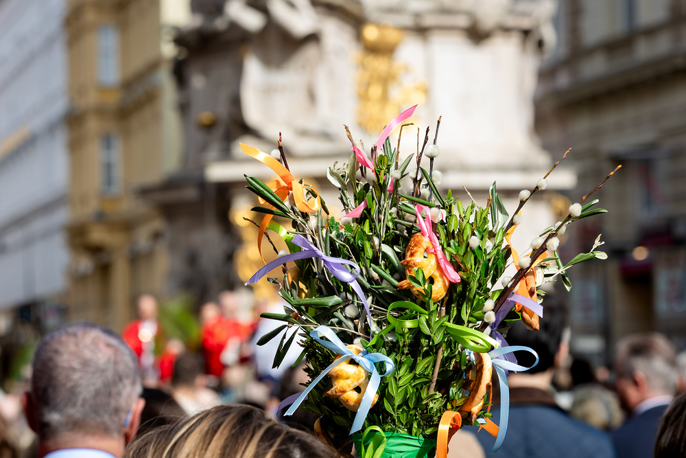Der Palmsonntag ist ein Tag, der von Freude und Jubel geprägt ist. Er erinnert an Jesu Einzug in Jerusalem, bei dem die Menschen ihm zujubelten und mit Palmzweigen winkten. Jesus wird gleichsam als König gefeiert. Das ist vergleichbar damit, wie heute hohen Persönlichkeiten der rote Teppich ausgerollt wird. Die Palmweihe des Stephansdoms, geleitet vom Apostolischen Administrator Josef Grünwidl, fand bei der Pestsäule am Graben statt. Anschließend zog die Prozession feierlich in den Stephansdom ein. Wir waren mit der Kamera dabei.