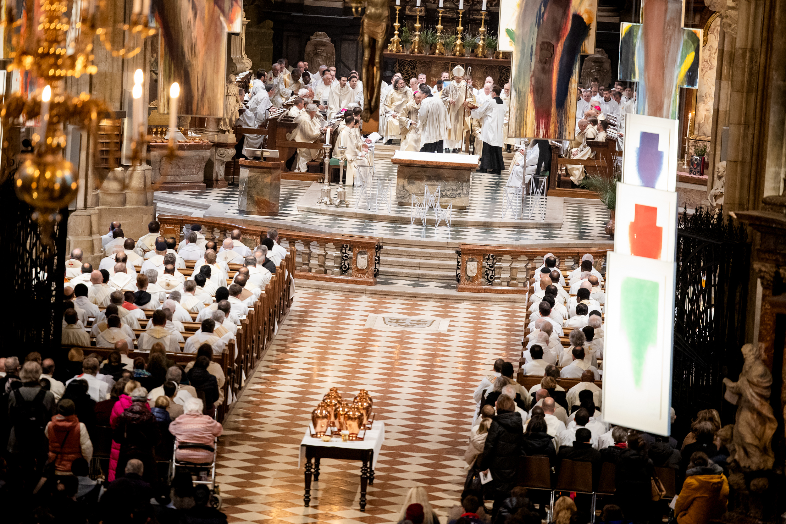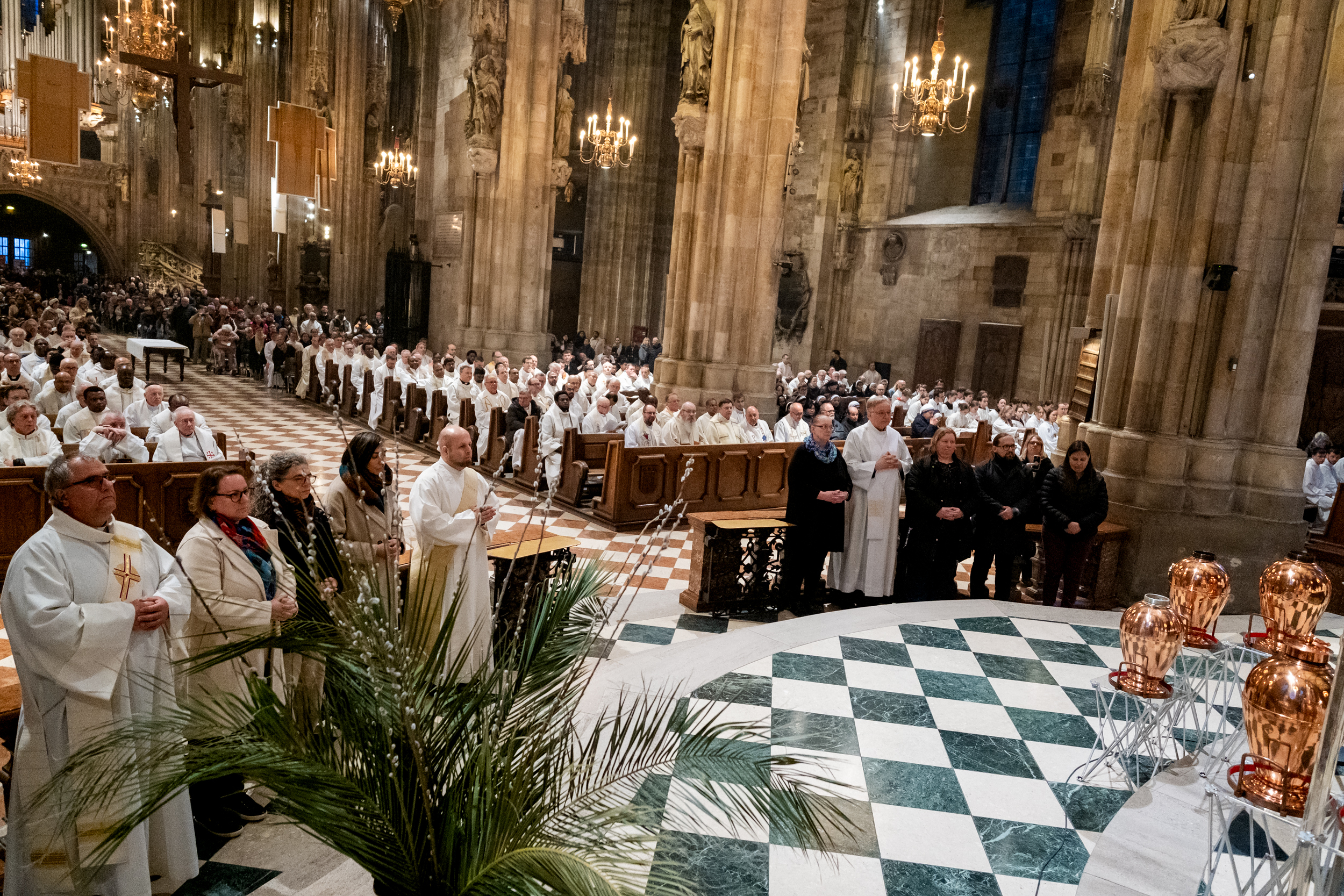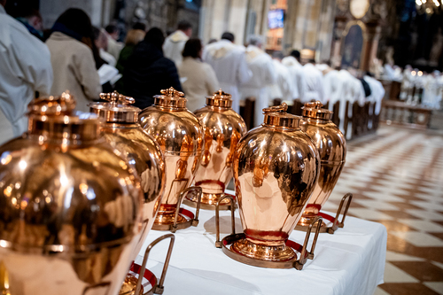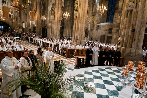 Wiener Erzbischof feierte Chrisammesse im Stephansdom - "Die heiligen Öle wollen uns Gottes Energie schenken, dem Leben Glanz verleihen und Balsam sein für die Seele". Unsere Kamera war dabei.