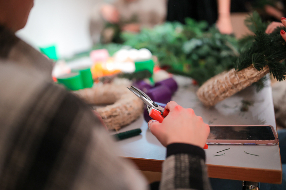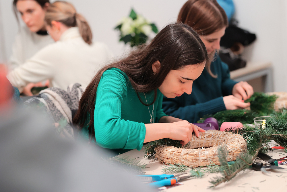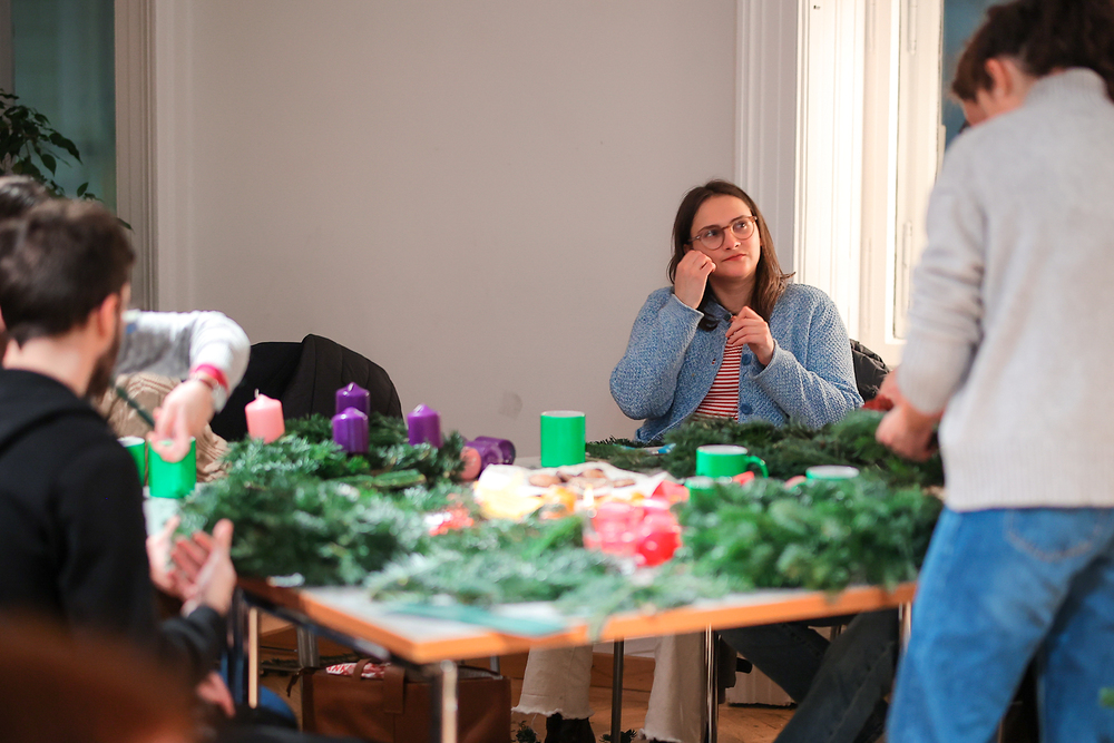 Adventkranzbinden mit StudentInnen der KHG
