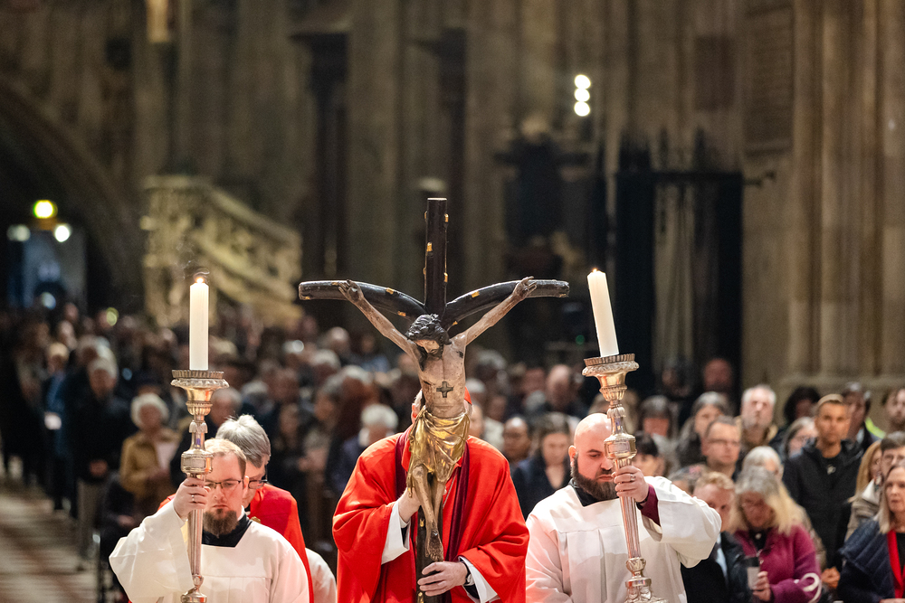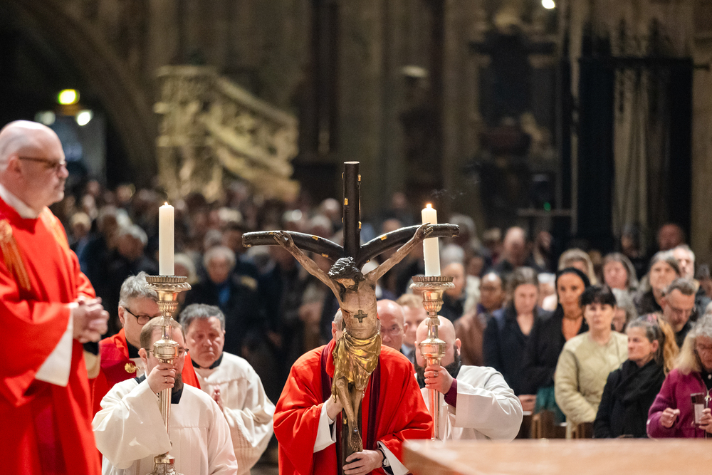 Der Karfreitag steht ganz im Zeichen der Trauer: Es geht um das Leiden, die Kreuzigung und den Tod Jesu – und was das für die Christen bedeutet. Die Liturgie an dem Tag ist in ihrer Form im Kirchenjahr einmalig. Wir haben Kardinal Schönborn im Stephansdom fotografisch begleitet.